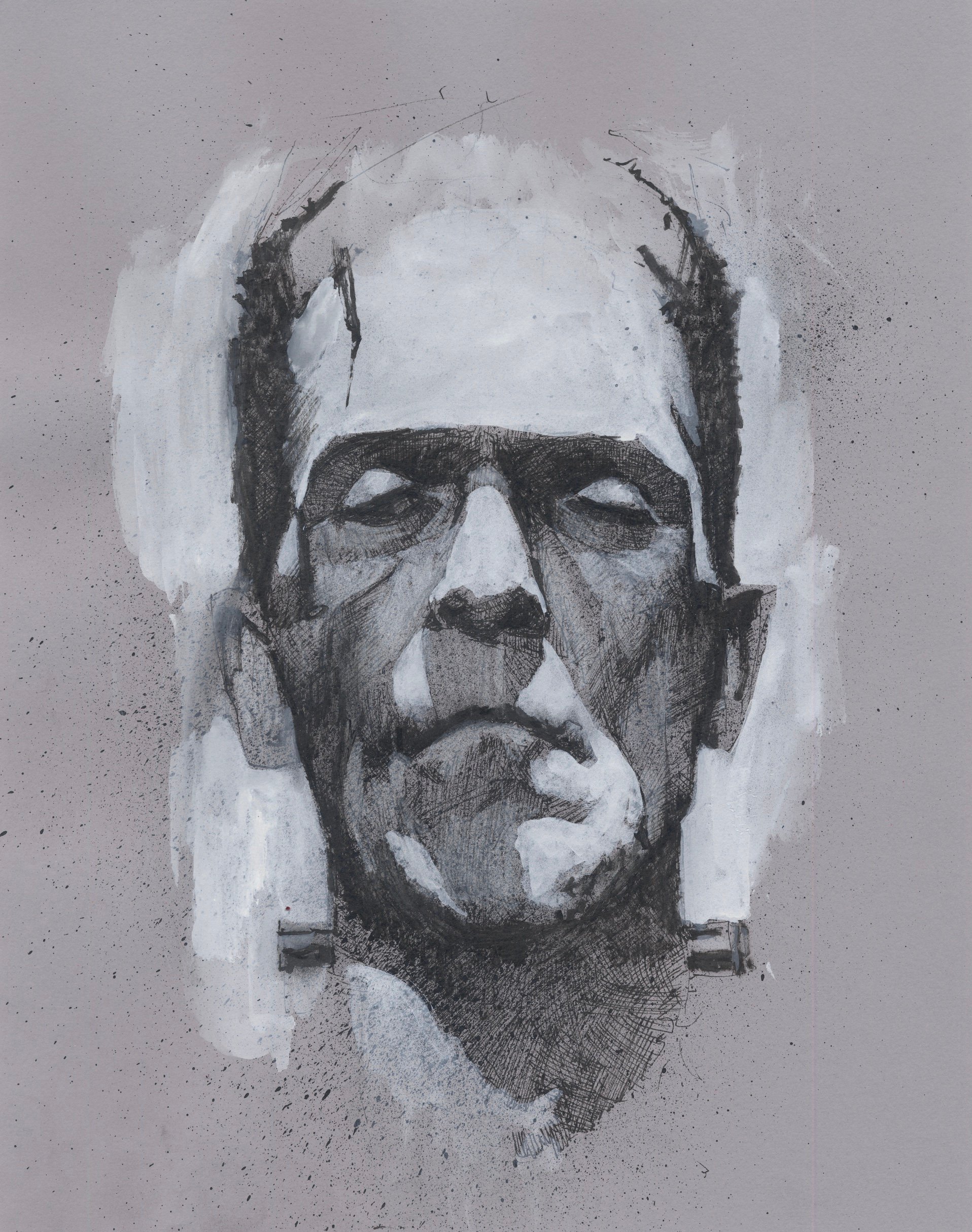 11X 14in. mixed media, gouache, oil, ink on heavy toned paper.